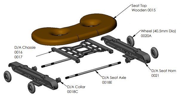Seat (Double Act) Complete, Wooden Top