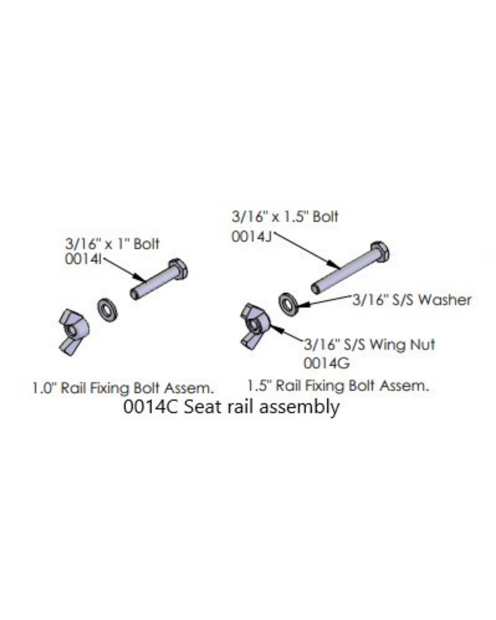 Seat Rail Fixing Assembly 3/16″ Bolt, Wing Nut & Washer